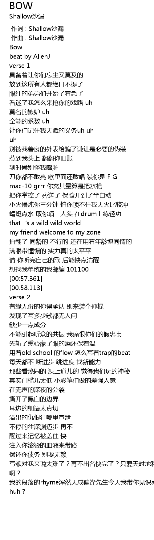 | [00:01.000] | zuò qǔ : Shallow shā lòu |