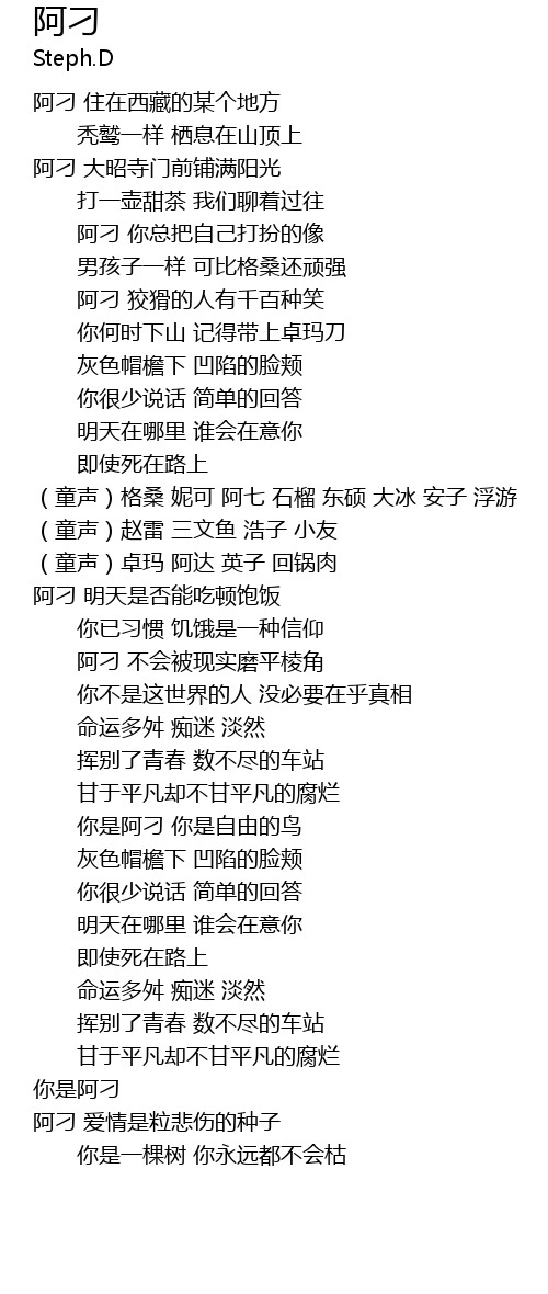 | (童声)格桑 妮可 阿七 石榴 东硕 大冰 安子 浮游 | |