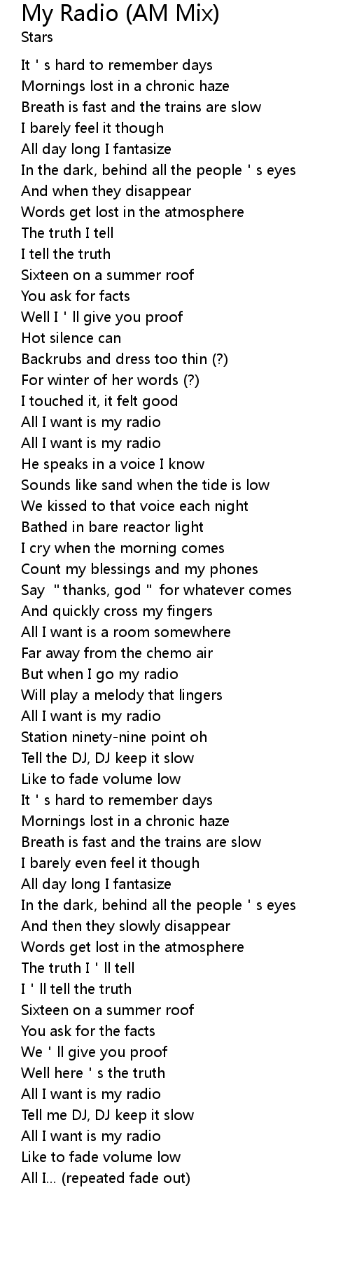 | [02:59.82] | All I want is my radio |