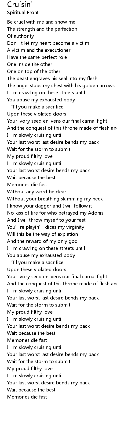 | Your last worst last desire bends my back | |