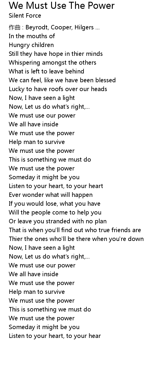 | 歌曲 | We Must Use The Power |