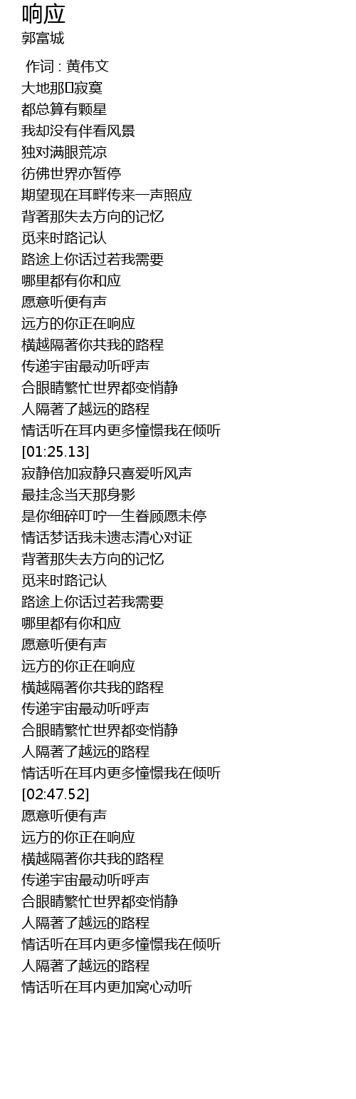 | [00:59.44] | 远方的你正在响应 |