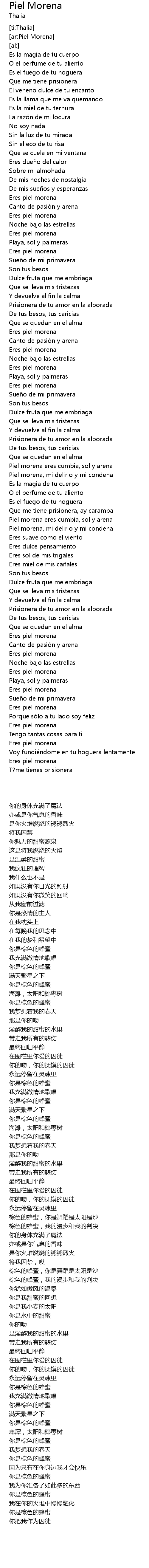 | [03:48.38] | Eres piel morena |