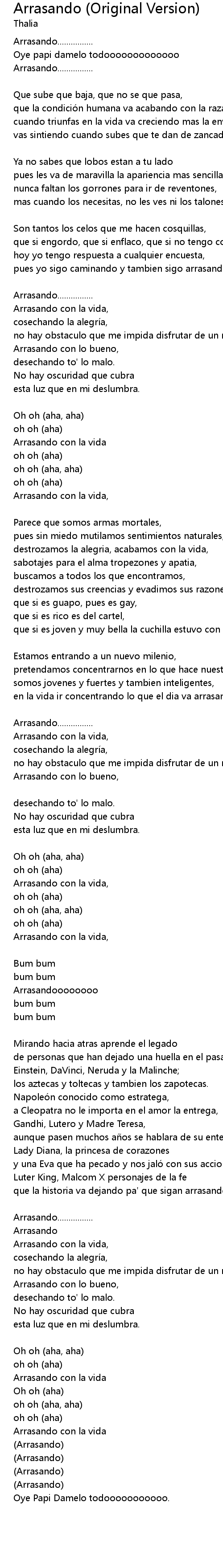 | 歌曲 | Arrasando (Original Version) |