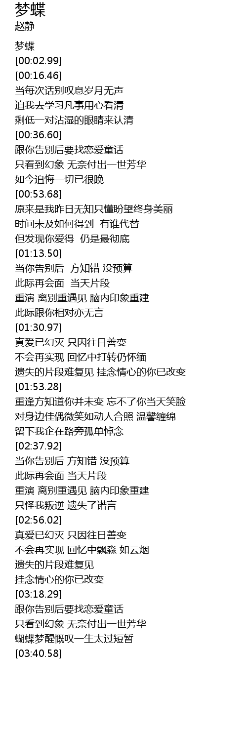 | [03:31.94] | 蝴蝶梦醒慨叹一生太过短暂 |