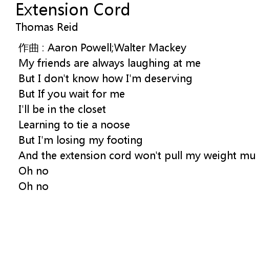 | [02:14.355] | And the extension cord won't pull my weight much longer |