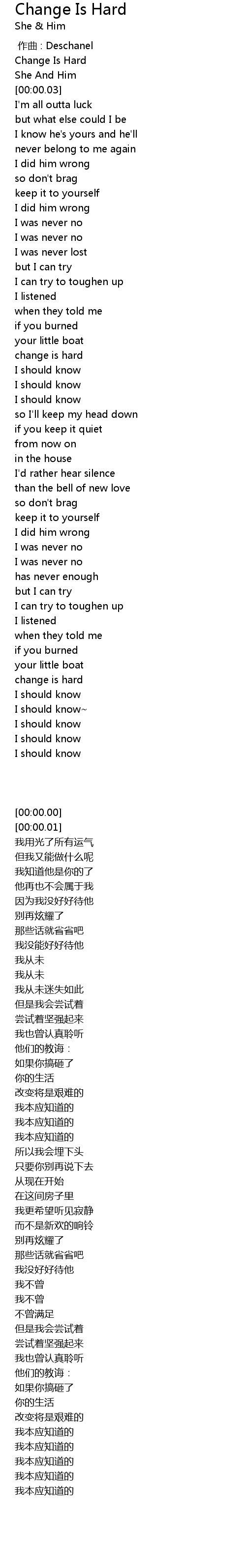 | [00:00.01] | She And Him |