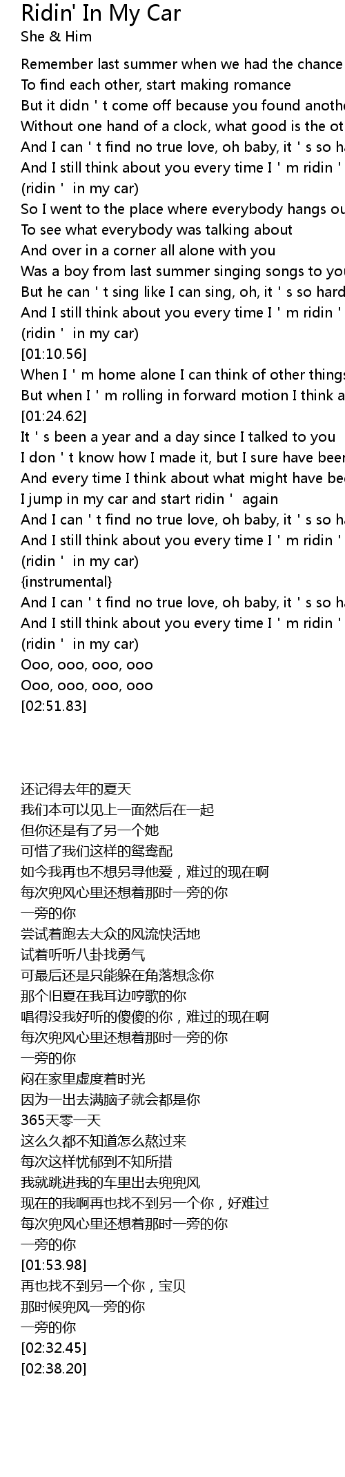| [00:35.29] | And I still think about you every time I m ridin in my car |
