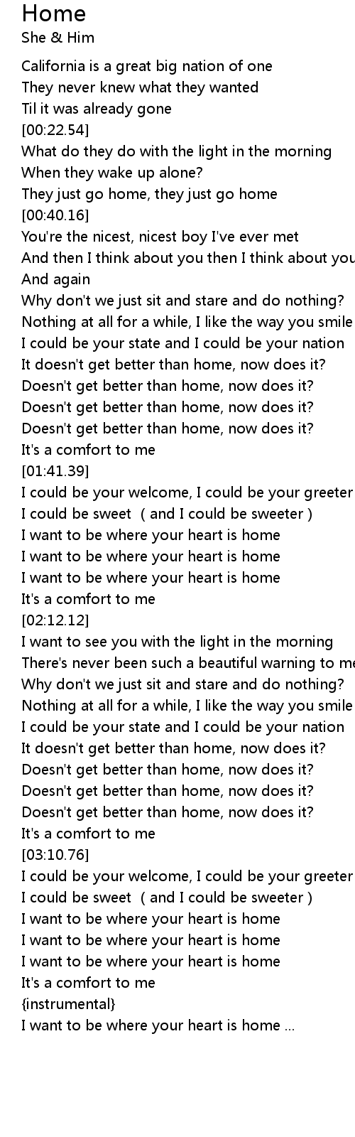| [03:00.72] | Doesn't get better than home, now does it? |