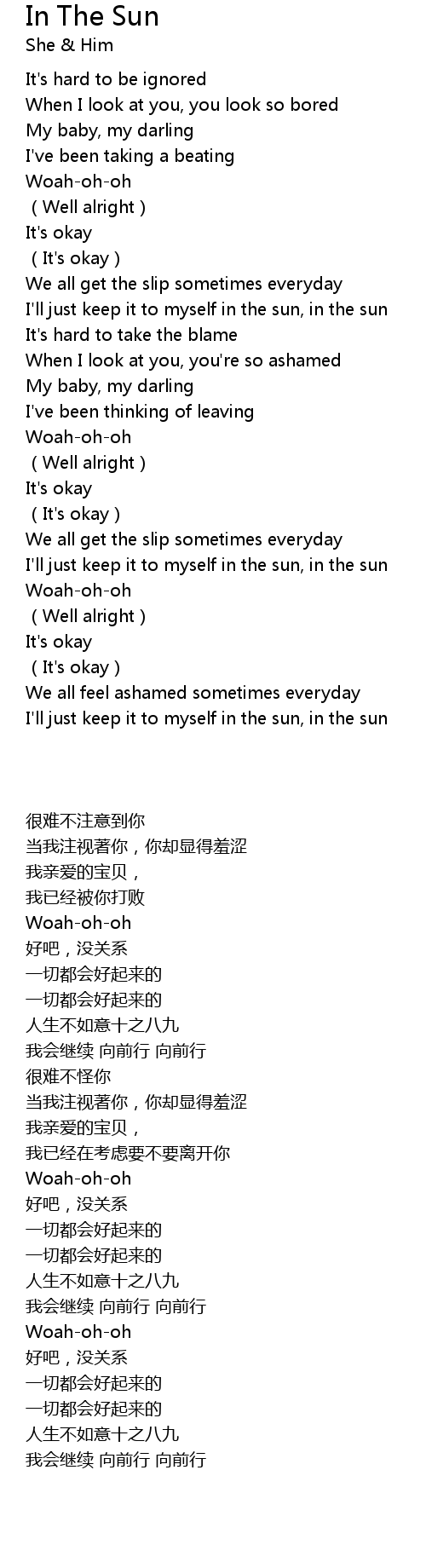 | [00:45.450] | I' ll just keep it to myself in the sun, in the sun |