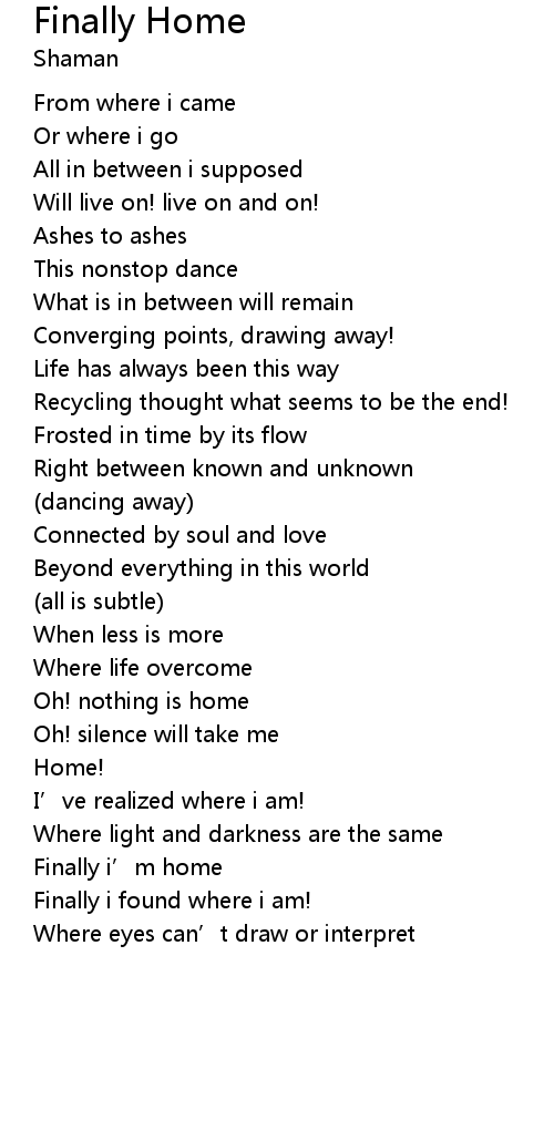 | Finally i' m home | |