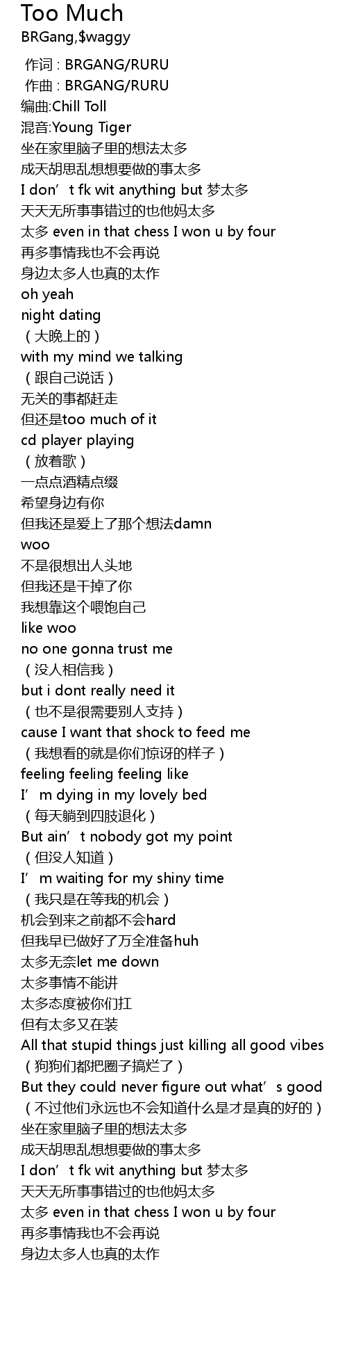 | [00:47.717] | dan hai shi too much of it |