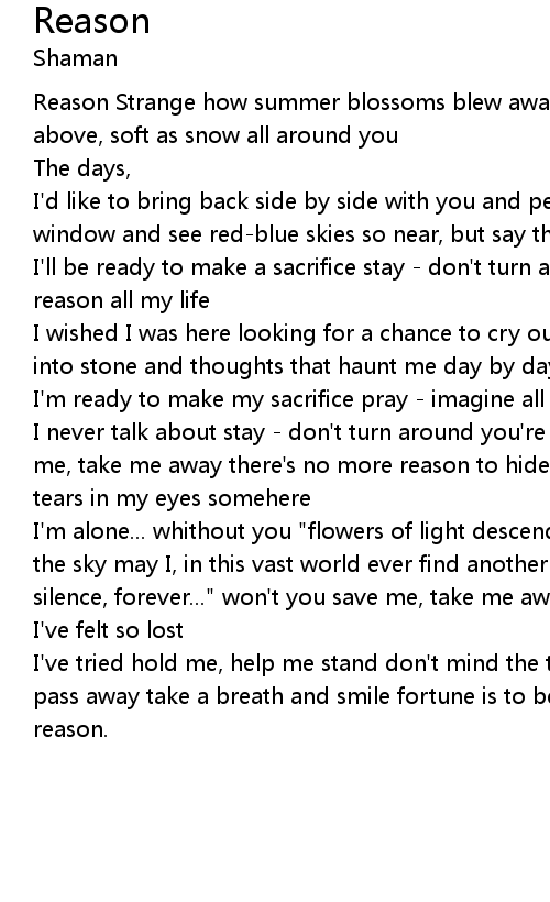 | I'll be ready to make a sacrifice stay - don't turn around there's only one reason all my life | |