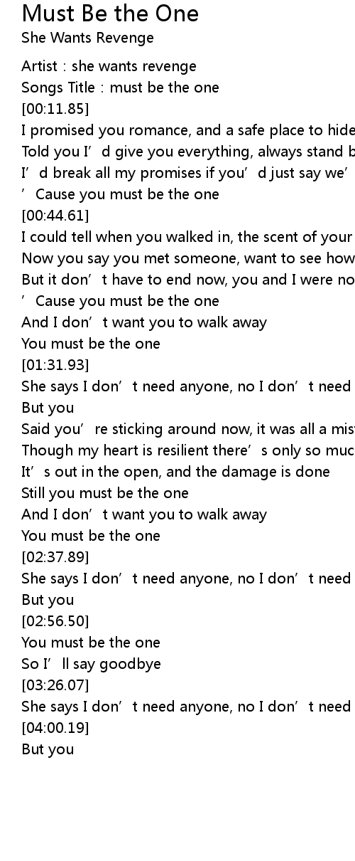 | [00:33.81] | I' d break all my promises if you' d just say we' re not done |