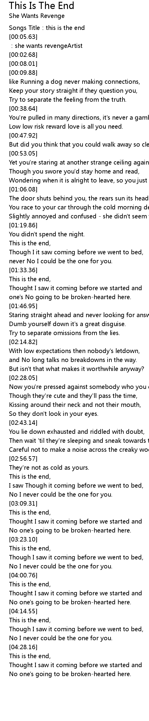 | [00:02.68] | Songs Title: this is the end |