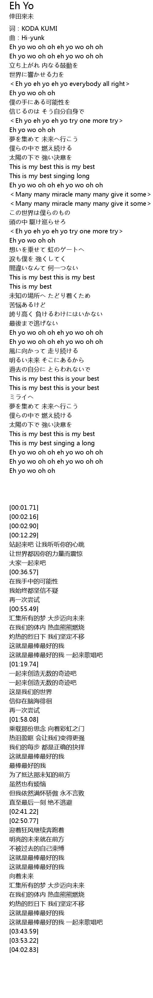 | [03:53.22] | Eh yo wo oh oh eh yo wo oh oh |