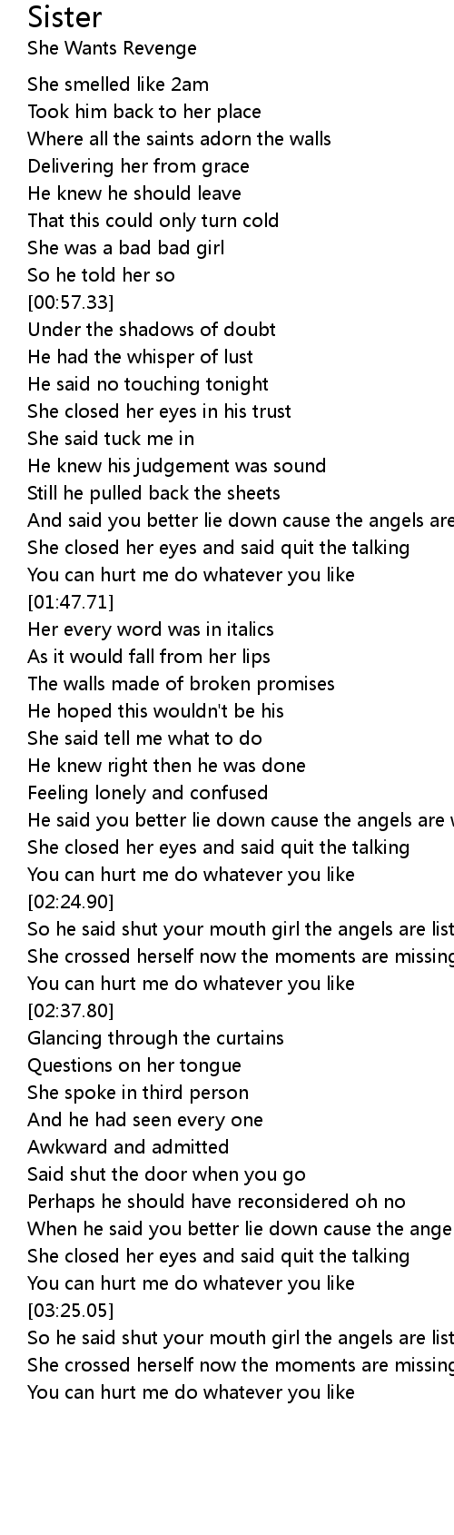 So he said shut your mouth girl the angels are listening |