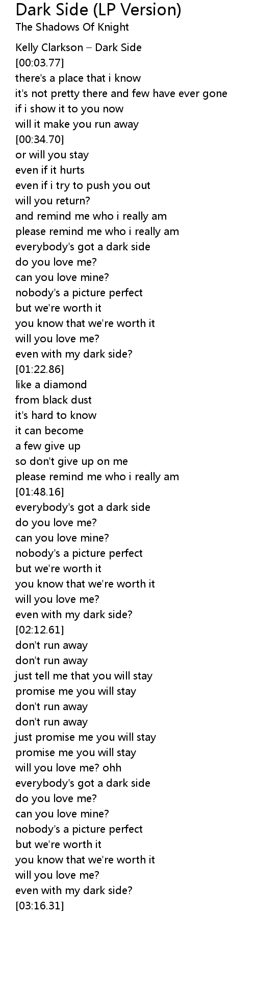 | [00:00.00] | Kelly Clarkson Dark Side |