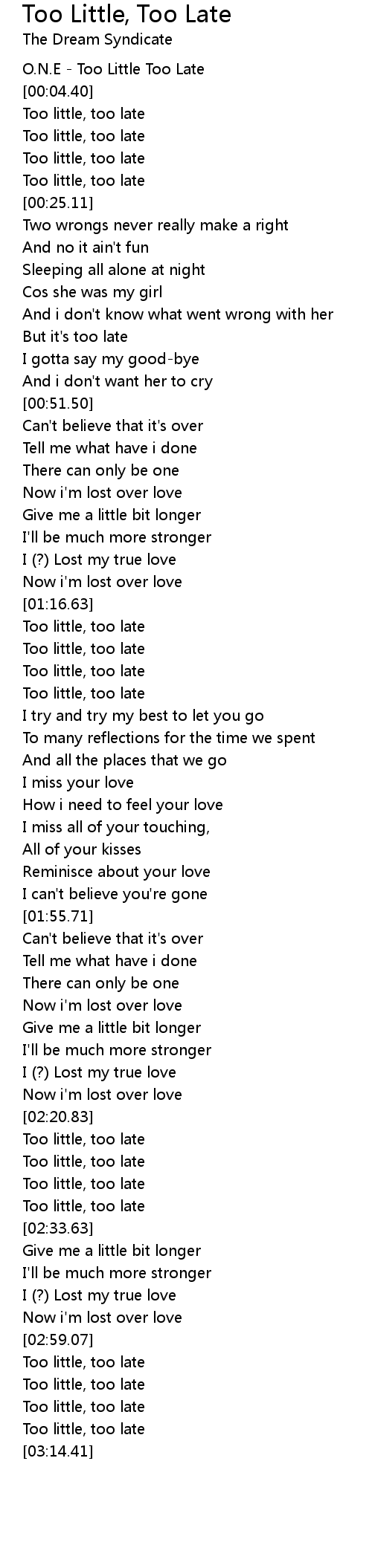O.N.E - Too Little Too Late |
