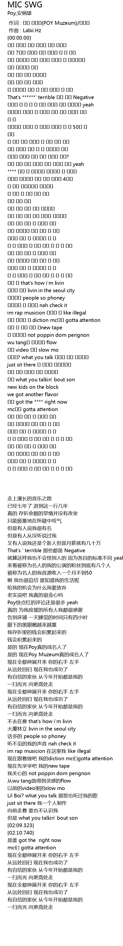 | [01:58.923] | Lil Boi? what you talk 那哥也听过我的歌 |