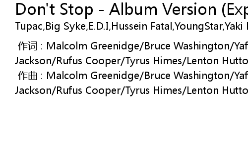 | 歌曲 | Don't Stop - Album Version (Explicit) |