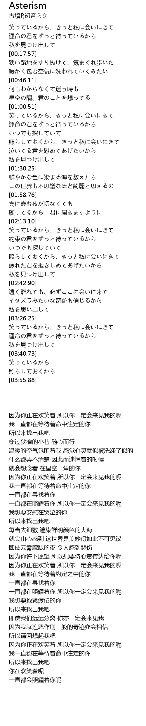| [00:54.31] | 星空の隅、君のことを想ってる |
