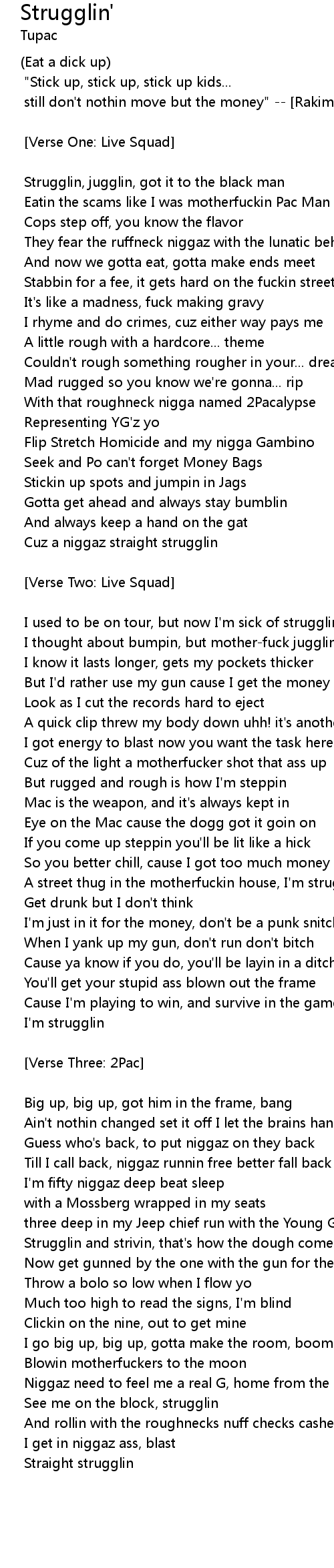 Cuz a niggaz straight strugglin |