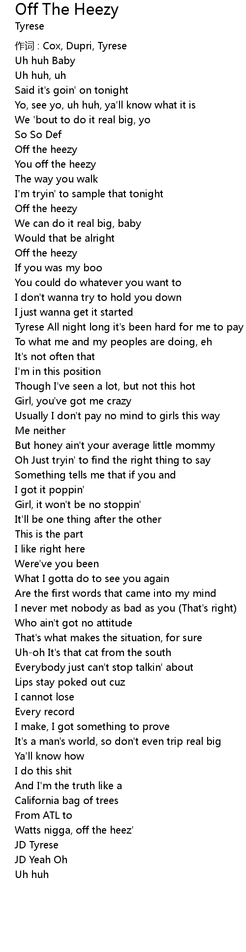 | 歌曲 | Off The Heezy |