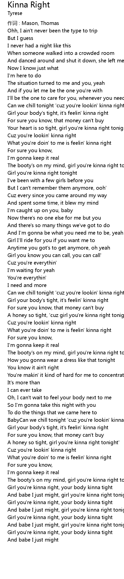 | Girl you' re kinna right tonight | |