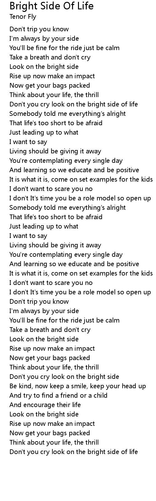 Don't you cry look on the bright side of life |