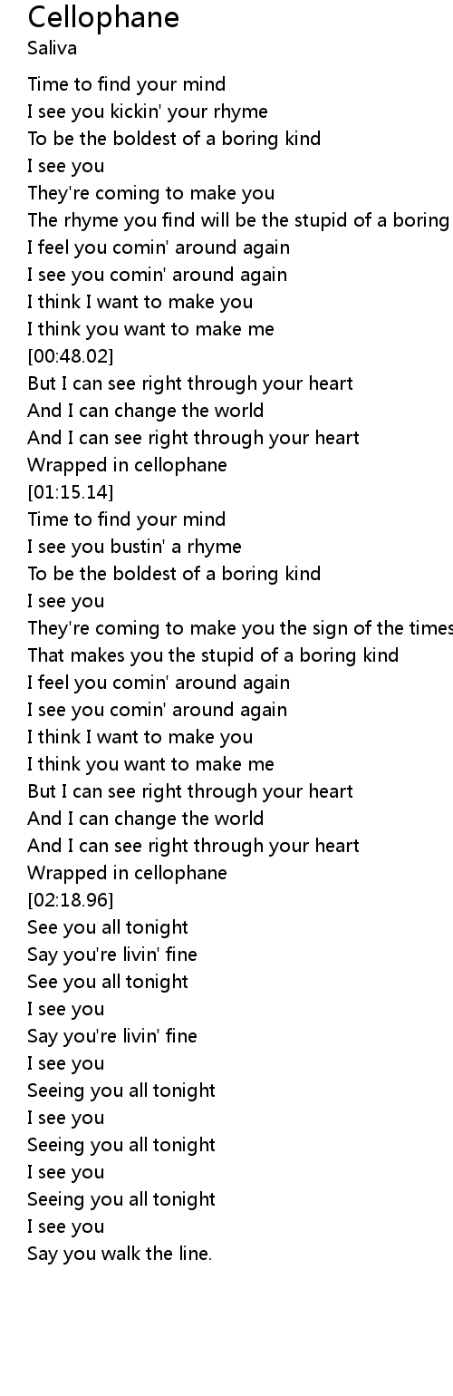 | [02:14.21] | Wrapped in cellophane |