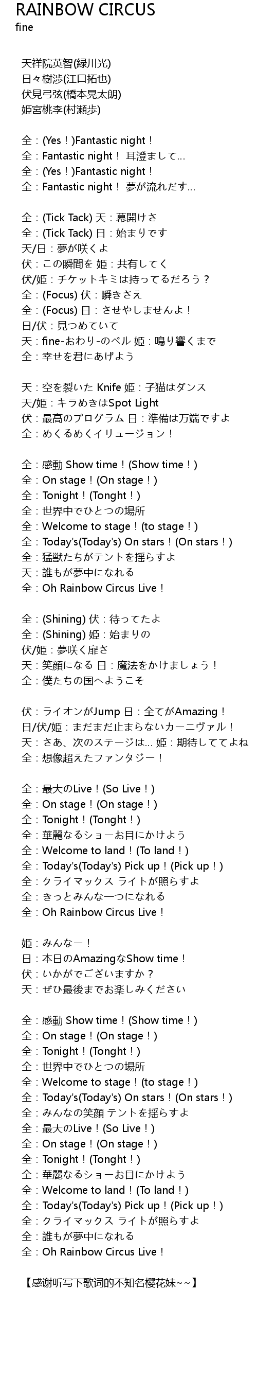 | 歌曲 | RAINBOW CIRCUS |