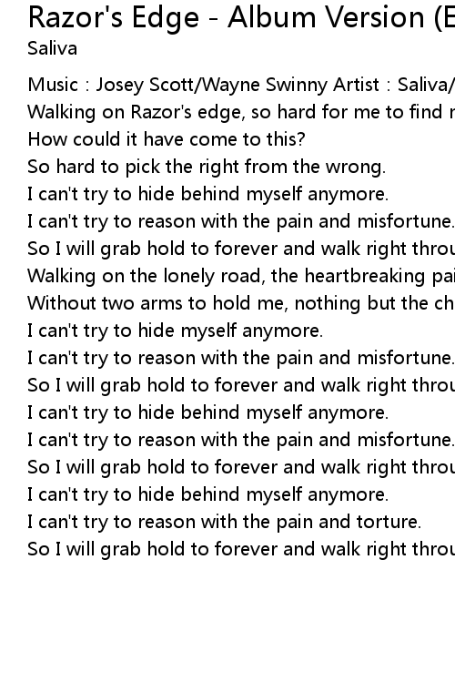 | Walking on Razor' s edge, so hard for me to find my way home. | |