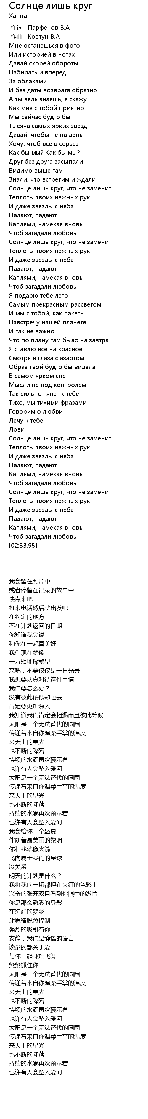 | [02:18.35] | Солнце лишь круг, что не заменит |