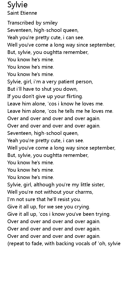 (repeat to fade, with backing vocals of 'oh, sylvie girl, oh sylvie girl.' |