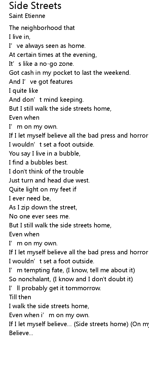 | If I let myself believe Side streets home On my own | |