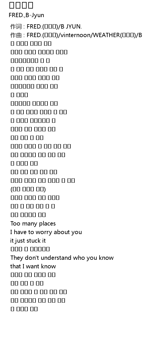 | [00:00.000] | 作词 : FRED.(프레드)/B JYUN. |