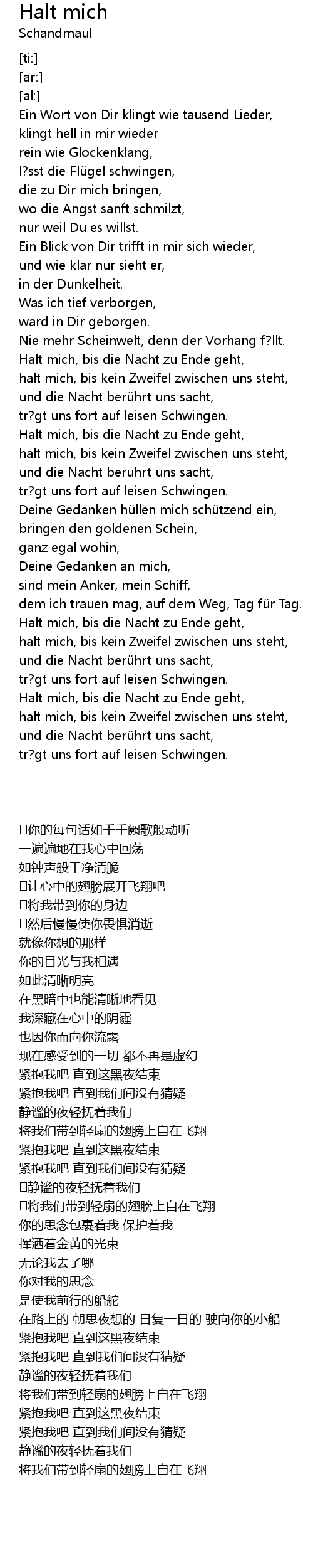 | [02:47.36] | Halt mich, bis die Nacht zu Ende geht, |