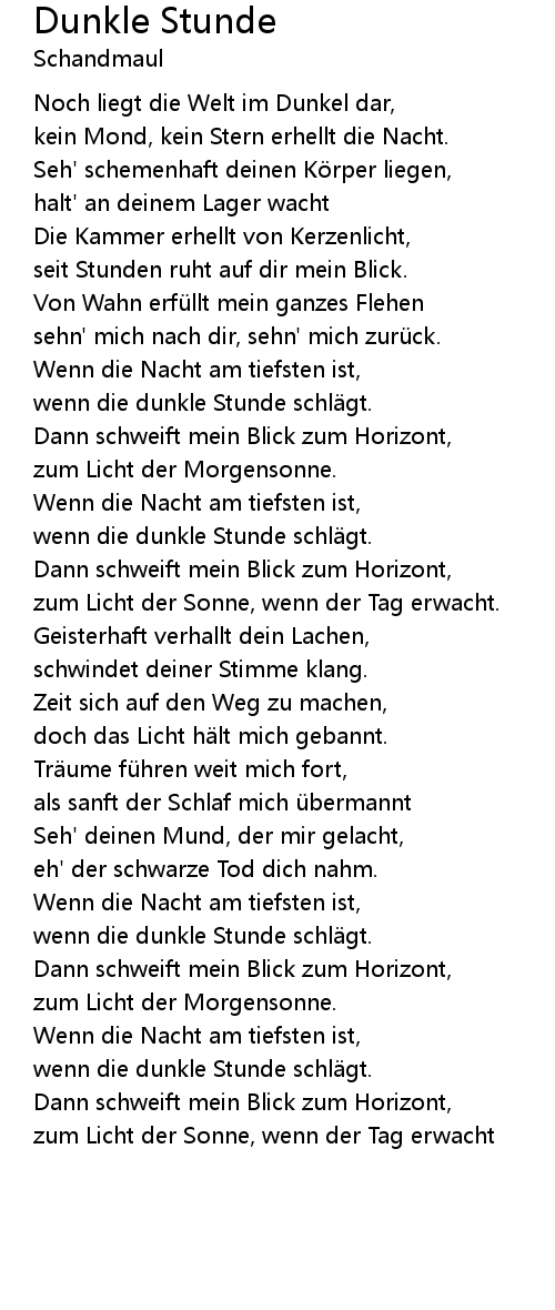 | kein Mond, kein Stern erhellt die Nacht. | |