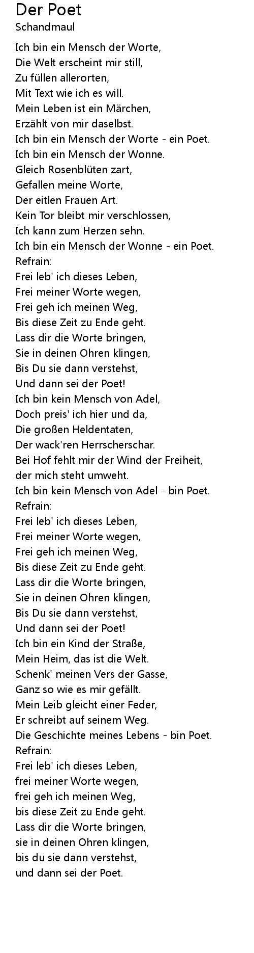 | Ich bin ein Mensch der Worte ein Poet. | |