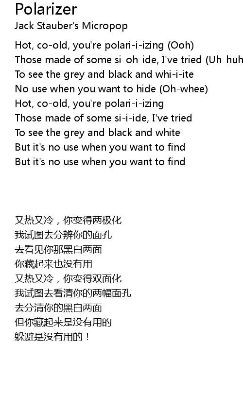 | [00:02.17] | Hot, co-old, you're polari-i-izing (Ooh) |