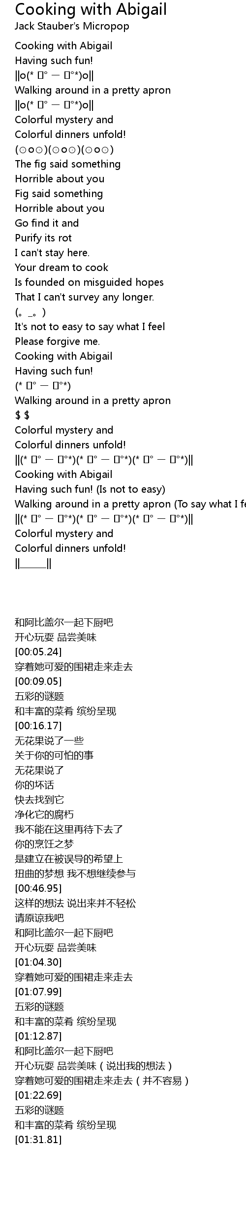 | [00:02.33] | 和阿比盖尔一起下厨吧 |
