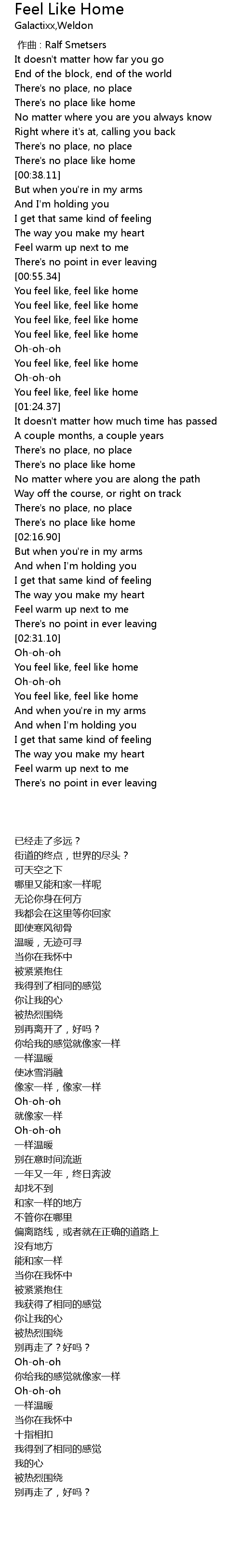 | [02:34.74] | 你给我的感觉就像家一样 |