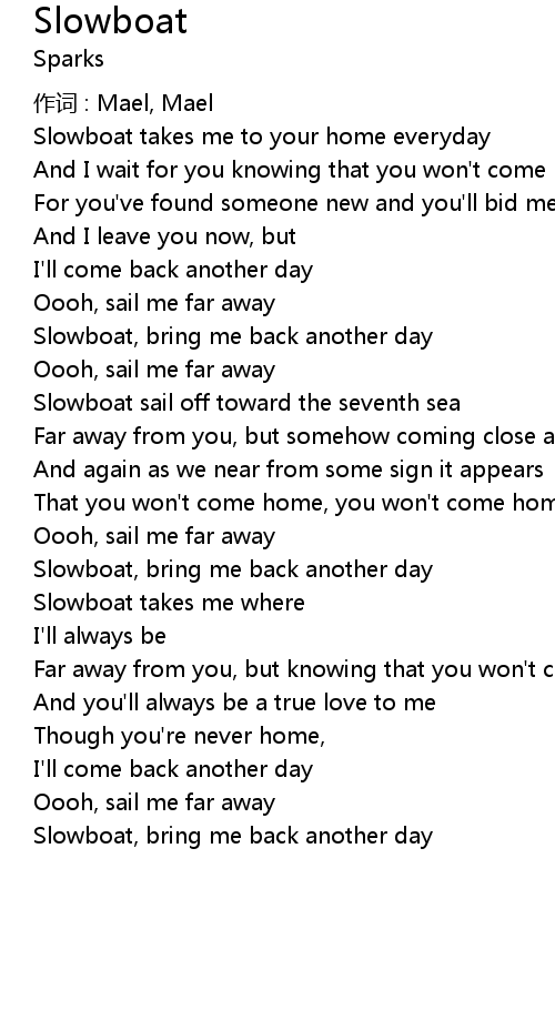 | Slowboat takes me to your home everyday | |