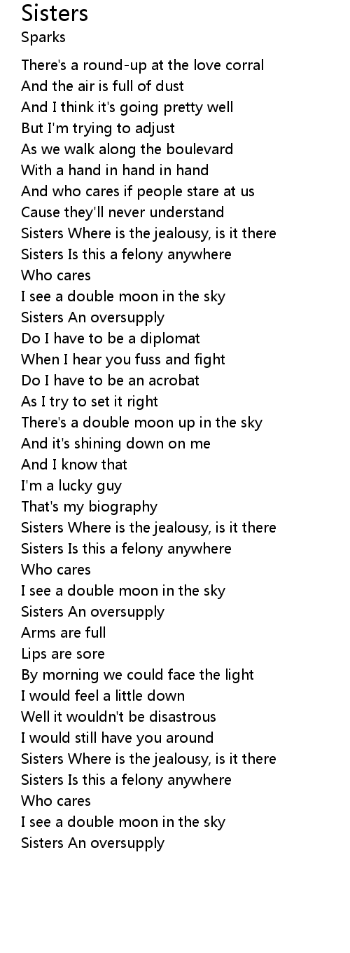 Sisters Where is the jealousy, is it there |