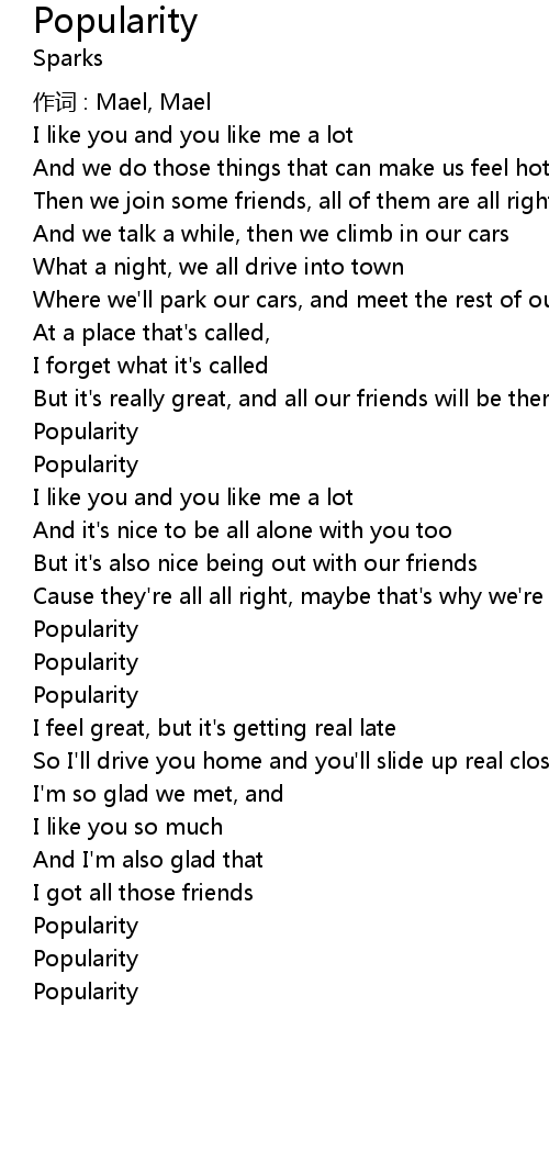 | 歌曲 | Popularity |