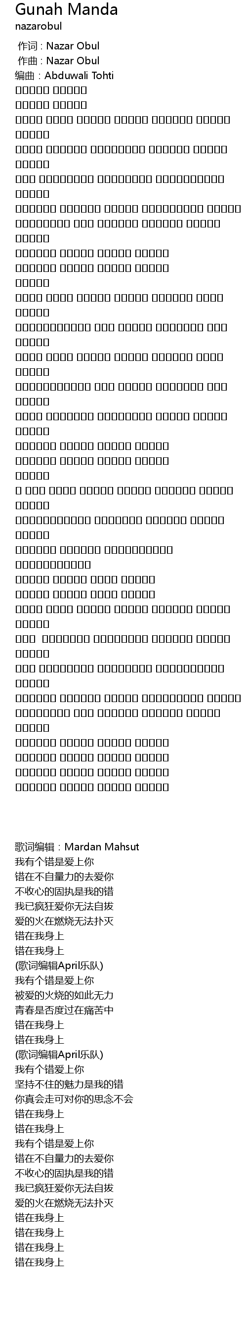 | 歌曲 | Gunah Manda |