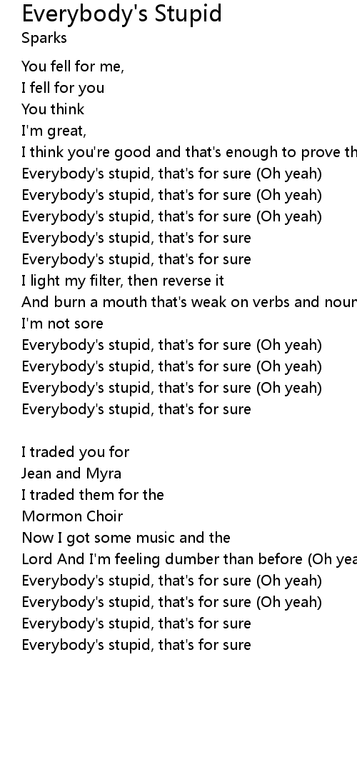 | Everybody's stupid, that's for sure (Oh yeah) | |