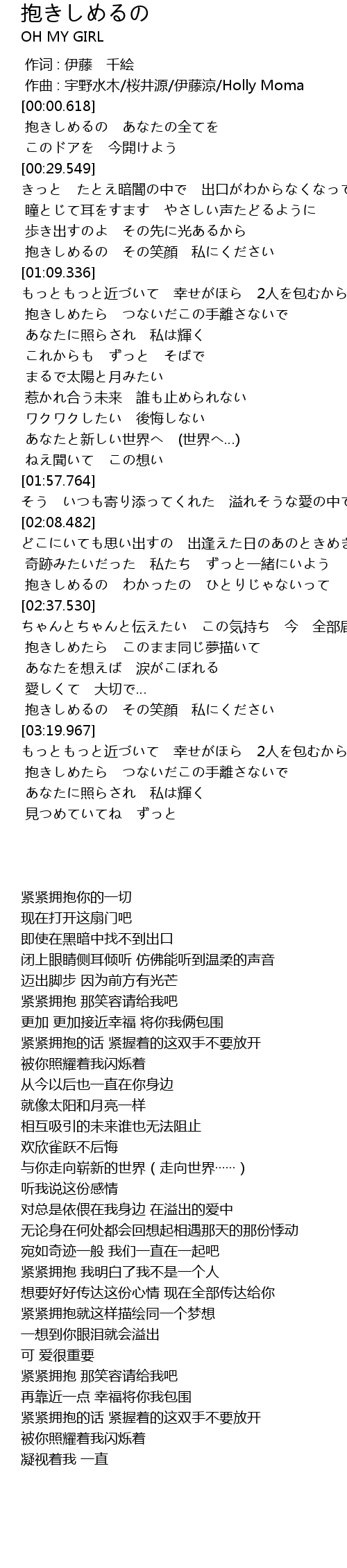| [00:58.457] | 抱きしめるの その笑顔 私にください |