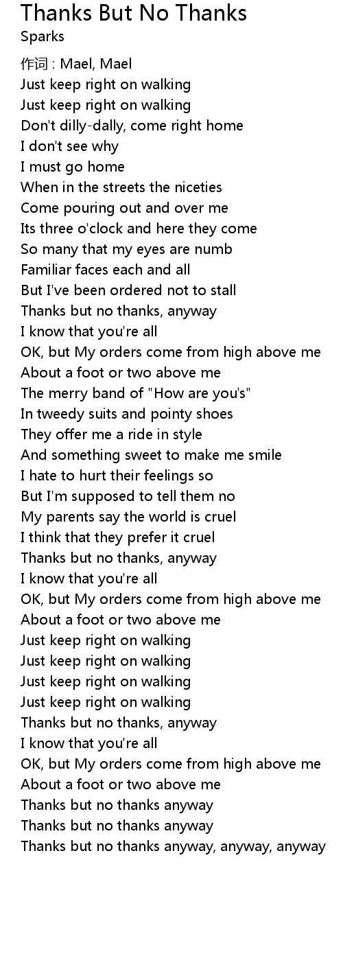 | Thanks but no thanks anyway, anyway, anyway |
